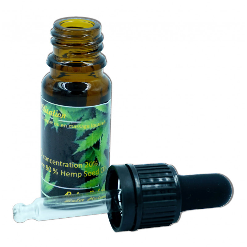 Flacon de 10 ml de Cannabidiol CBD, avec une concentration 20 %